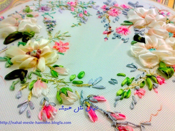 روبان دوزی و گلدوزی قلب..