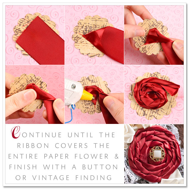 چینهای منظمی که به شکل گلبرگ در اطراف این گل روبانی وجود دارد به روشی آسان درست شده است که به تمیزی کار بسیار کمک میکند کافیست به تصاویر نگاه کنید و کار را انجام دهید.