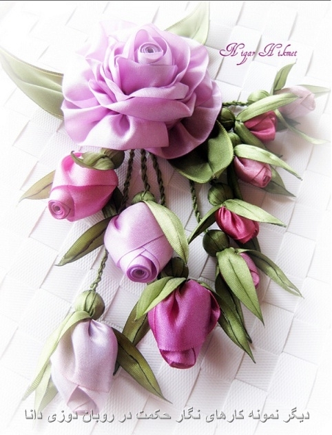 دوستانی هستندکه دایم به دنبال تکنیک های جدید اموزش روبان دوزی هستند اما به نظر من همیشه لازم نیست کارسختی انجام داد تا زیبا و هنرمندانه باشد.کافی است کارهایی را که می دانیم انجام دهیم اما با ظرافت و حوصله.قبول دارین؟