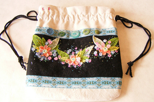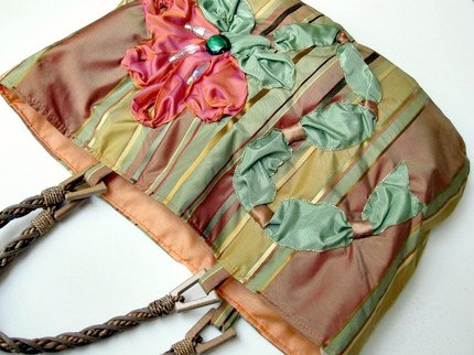 این هم یک کیف زیبای روبان دوزی شده تقدیم به شما دوستداران کارهای دستی