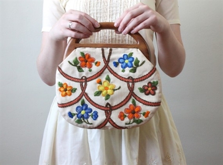 گل هایی که روی این کیف زرشکی دوختخ شده می تواند روی قسمتی از لباس هم دوخته شود.